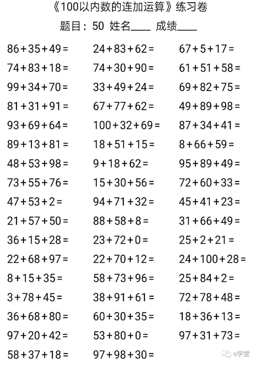 “冰冻三尺,非一日之寒”,平常我们需要对孩子进行一些口算训练,在加强孩子口算能力的同时孩子的书写习惯和集中注意力的习惯也会得到加强。这样做起题来既能提高效率,准确率也会大大提升。
