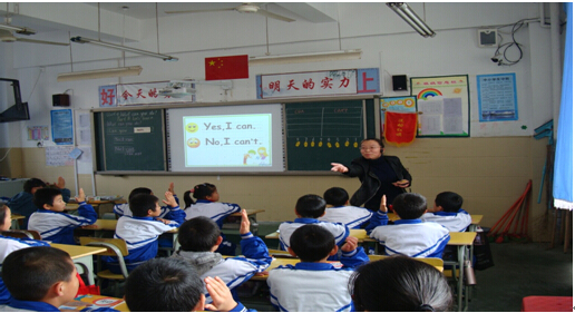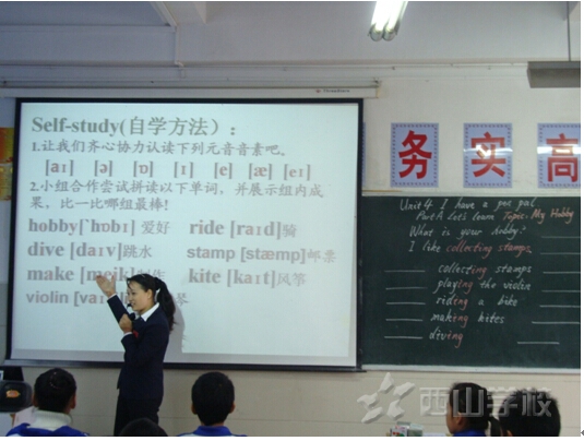 11月27日西山教育集团福建、江西两校课改交流,江西西山学校小学部张文琴老师五(9)班举行的英语课改示范课