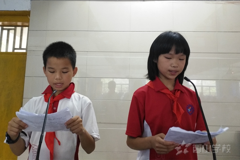 2017年 5月31日下午,江西省西山学校小学部低年段全体师生齐聚大多媒体,举行少先队新队员入队仪式。学校政教处习浩老师、小学部副校长李俏坡、政教处主任李剑辉、教务处主任吴仍辉、低年段段长黄小君、副段长彭先明出席入队仪式。