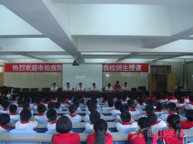 下午2点半,在多媒体教室,一年段副段长彭先明首先宣读了新加入少先队员的名单。入队仪式开始,四年级的老队员为出席的领导佩戴了鲜艳的红领巾。激昂的队歌响起,三名老队员手握少先队队旗绕全场一周。接着,老队员为新加入少先队的小队员一 一佩戴上了鲜艳的红领巾。在大队辅导员潘开良的带领下,新队员举起右拳,大声宣誓。