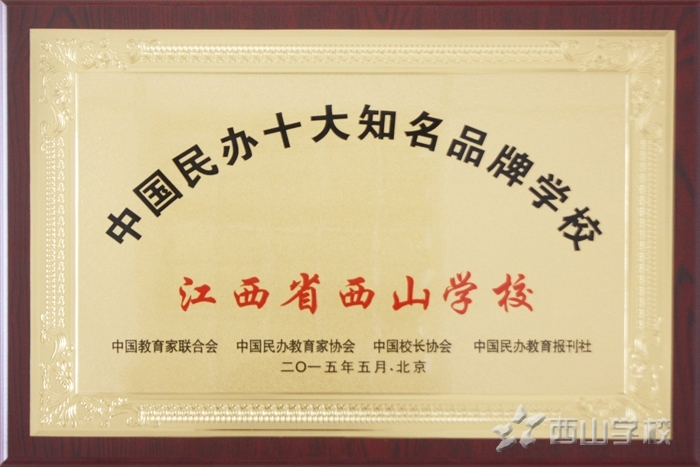 2015年5月,江西省西山学校荣获“中国民办十大知名品牌学校”