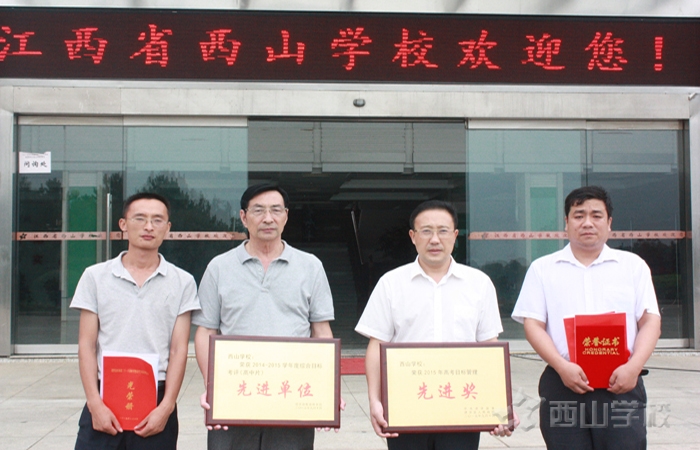 9月12日上午,进贤县县委、县政府在县行政大楼大礼堂隆重召开庆祝第三十一个教师节暨高考目标管理表彰大会。会上,江西省西山学校被评为“2014——2015学年综合考评目标先进单位(高中片区)”,并荣获“2015年高考目标管理先进单位”奖,校长刘在远获“2014——2015学年综合考评优秀校长”称号,高中部教师李少华荣获“2015年高考目标管理先进个人”奖,初中部教师仪陈伟被评为“2015年进贤县优秀教师”。
