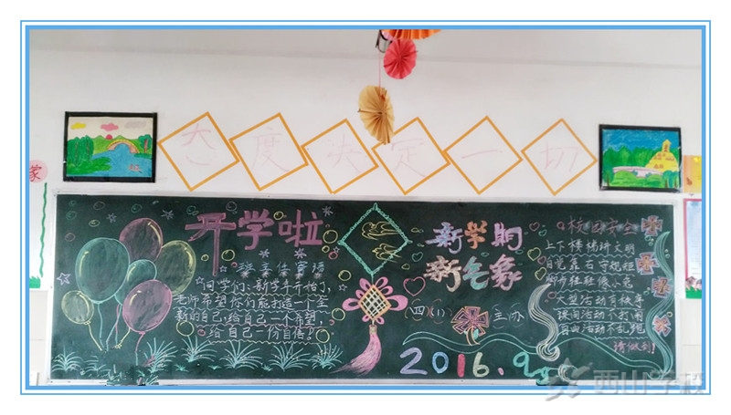 新学期,新气象,新开始。学校为了给学生营造新学期的氛围,要求各班以“开学了”为主题绘制黑板报。