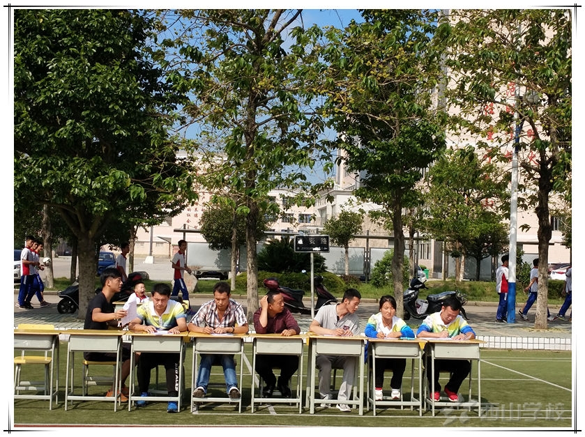 随着比赛接近尾声,裁判们在进行着打分,看看哪个队形为班级增光。