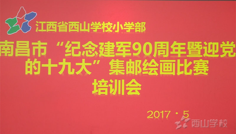 为纪念中国人民解放军建军90周年,迎接党的十九大胜利召开,引领全市中小学校开展集邮知识普及活动,弘扬爱国主义精神,传承中华优秀文化。2017年5月2日上午,江西省西山学校小学部在二楼美术室召开了南昌市“纪念建军90周年暨喜迎党的十九大”集邮绘画比赛培训会。综合组老师黄慧敏、梅发明、余海贵、教务员杨芳参加了会议,综合组组长王小华主持会议。