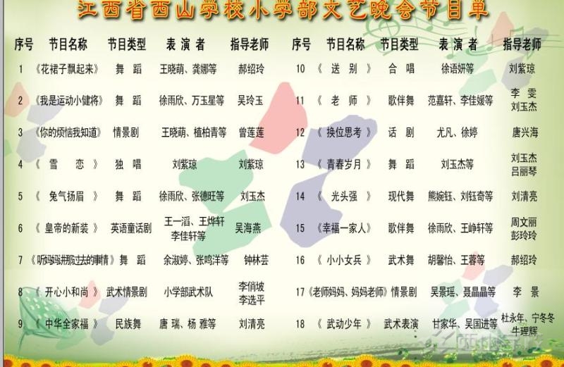 节目单揭晓--江西省西山学校小学部文艺晚会进入倒计时
