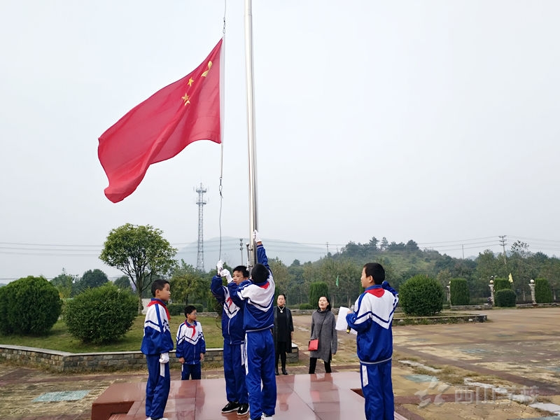 2017年10月23日,江西省西山学校小学部全体师生齐聚学部操场举行本学期第九周升旗仪式。此次升旗由五(5)班担任国旗护卫队,宇文涛、吴限、黄健诚担任升旗手,曹正吉同学主持,王恩泽同学国旗下讲话。